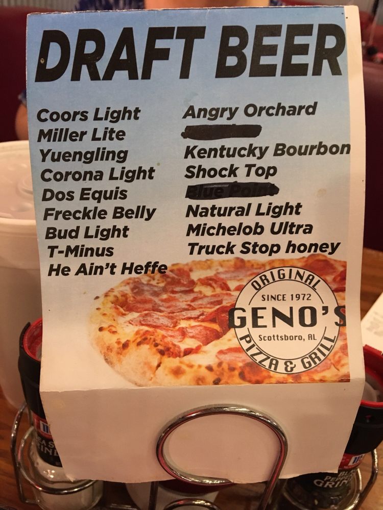 Genos Pizza & Grill offers a wide selection of pizzas, American classics, and sandwiches. Located in Scottsboro, AL, this women-owned establishment provides a variety of utilities, including takeout, delivery, and catering services. The restaurant features a casual yet classy atmosphere with outdoor seating and free Wi-Fi. Customers rave about the excellent service and delicious food, with standout menu items like wings, pizza, and cold beer. Whether you're dining with a group, as a couple, or with kids, Genos Pizza & Grill has something for everyone. With positive reviews highlighting the quality of the food and the welcoming staff, this spot is a must-try for anyone passing through the area. Experience great service, fantastic food, and a warm atmosphere at Genos Pizza & Grill.